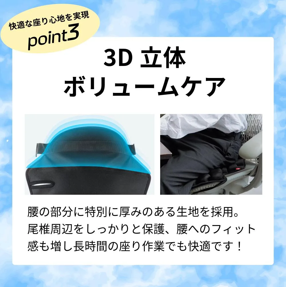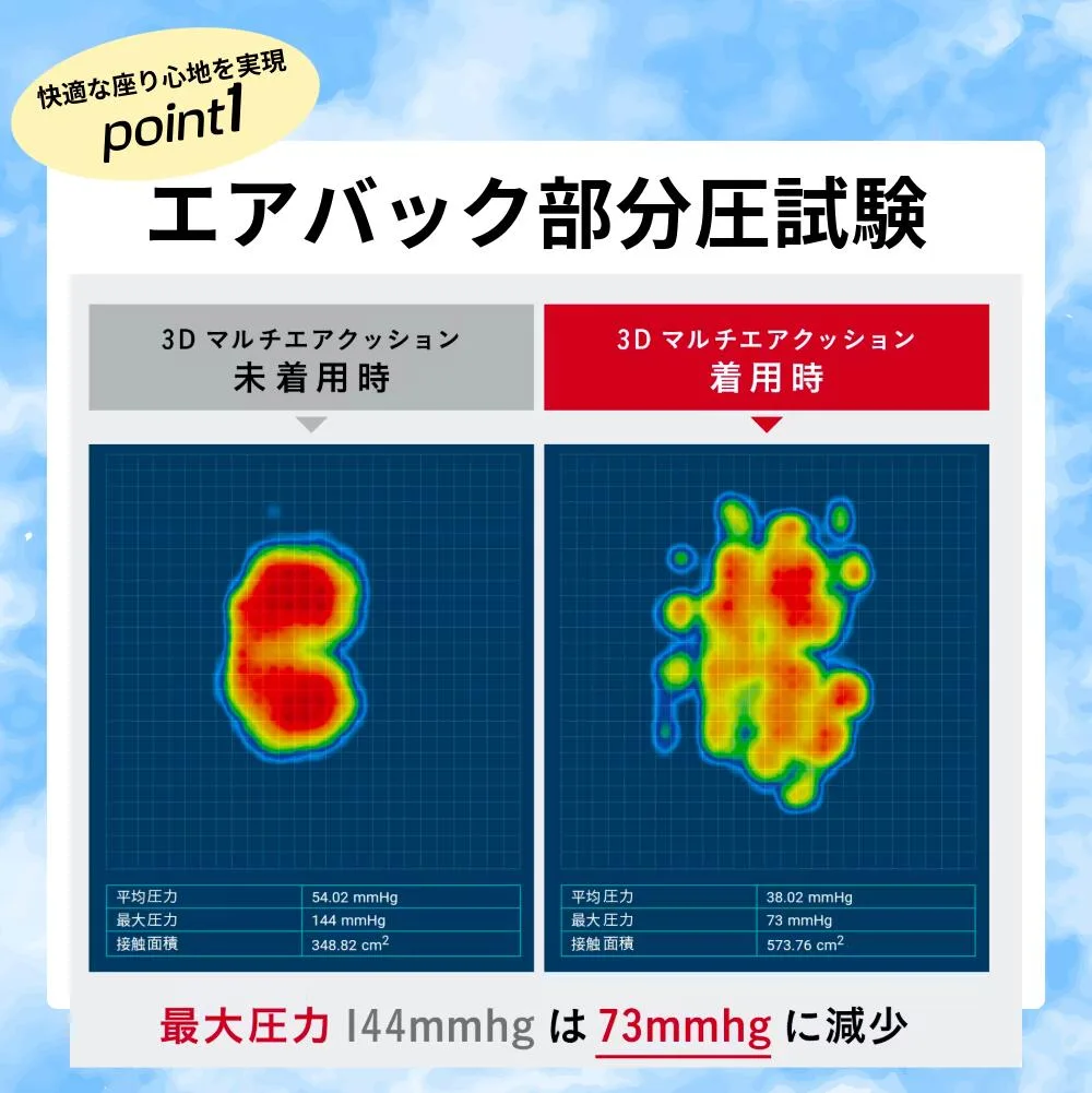 「3Dマルチエアクッション」は、31個のエアセル構造で、シーンを選ばず快適なサポートを実現します。