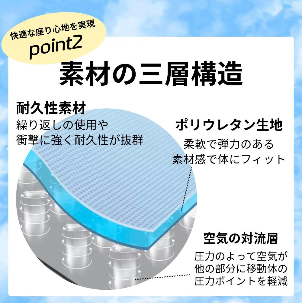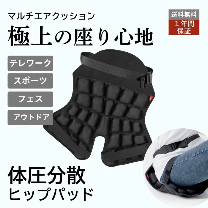 【座る・付ける・動ける。どこでも快適、まったく新しいエアクッション】