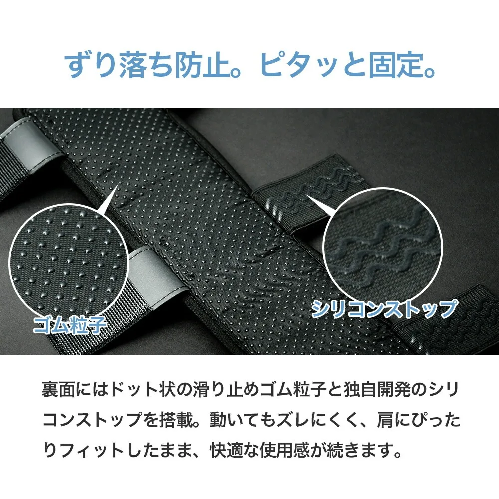 特許取得済のエアセル構造が、肩にかかる荷重を広範囲に分散。